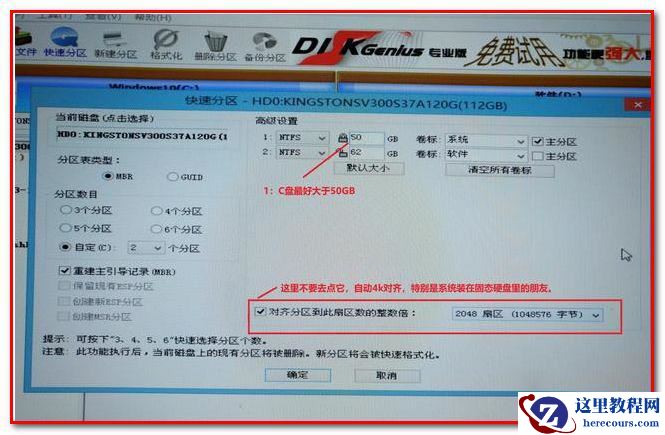 3、新电脑需要给新硬盘分区,固态硬盘注意4K对齐。按照我的教程来就没问题。老电脑直接跳过这一步。