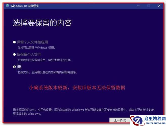 打开镜像解压的目录或者打开装载的虚拟镜像,运行setup.exe,然后按提示进行系统安装。如果下载的是和本电脑相同的系统版本,可以保留用户数据和软件数据,系统修复用户可以使用这个选项;如果系统版本不同,就不要保留用户数据了,否则很有可能装失败(只会清除C盘数据,其他盘还在),想保留数据的小伙伴可以备份数据后尝试一下保留数据安装。