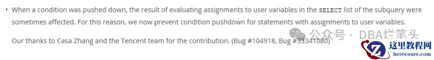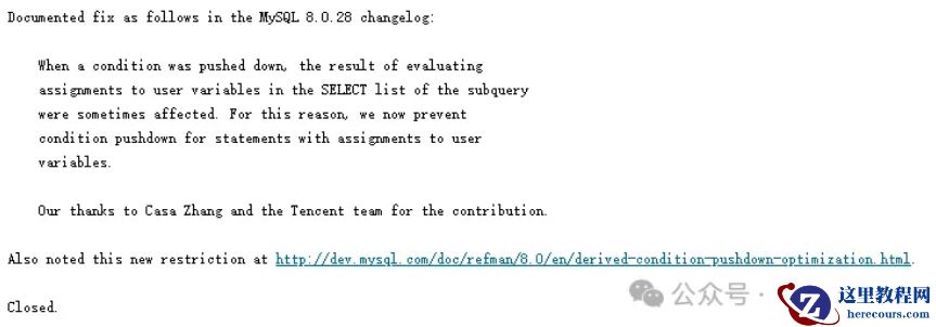 - MySQL[bug] 子查询含用户变量,派生条件下推将导致不同版本的查询结果不一致