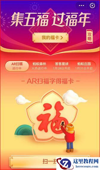 那么,支付宝集五福已经是第四年了,今年会有什么变化呢?那就请往下看吧,除了AR扫福外,而且又增添了三种新玩法:新增蚂蚁森林浇水、蚂蚁庄园喂小鸡、答答星球小程序答题打败对手得福卡,不过这些都有特定的开启时间。下面详细说明一下。