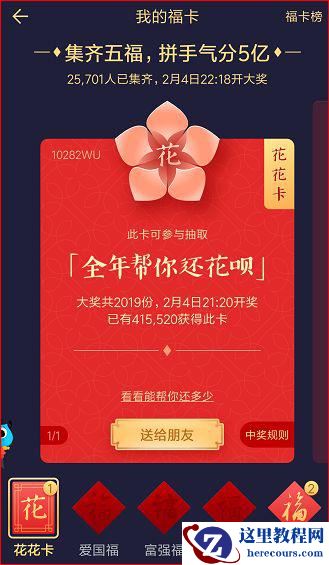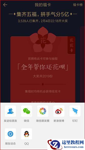 五福分别是:富强福、和谐福、友善福、爱国福、敬业福、去年还有万能福,今年还有花花卡哦!