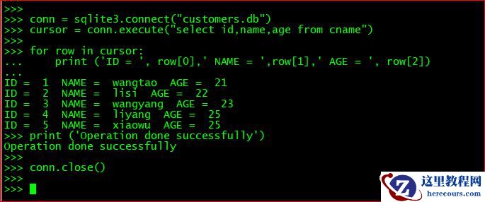 print ('ID = ', row[0],' NAME = ',row[1],' AGE = ', row[2])
