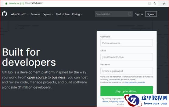 百度搜索 GitHub 或者直接点击 https://github.com/ 进入官网。