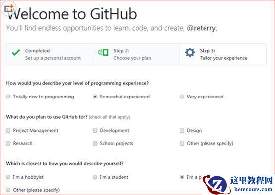 GitHub 为了分析用户设置几道问卷,可以如实回答也可以随便填写。