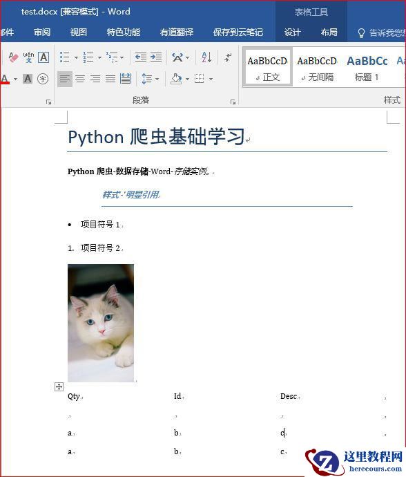 通过以上代码便将数据写入到Word,最终结果如下图所示。