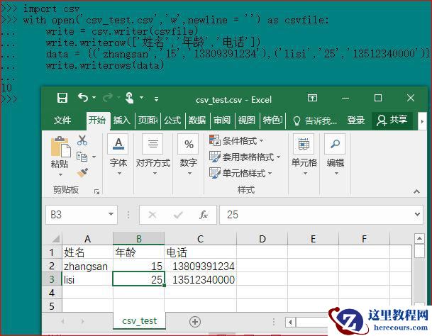 write.writerow(['姓名','年龄','电话'])