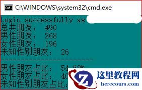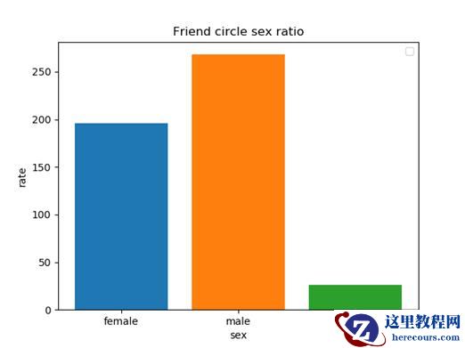 通过这么十几行代码已将我们需要的信息打印出来了,只是这些信息不够直观,密密麻麻的文字当然没有图标展现的更好了。微信好友中,有部分人不愿意填写性别的,故这些人的性别未知,其他人统计后发现一惊天大秘密,我的490位好友中,男性朋友有268位,女性朋友有196位,未知性别的26位,一看这数据量,居然是男性占大多数,暴露了还是一个单身汪的悲哀,看来今年测的桃花运看来是无法实现了。