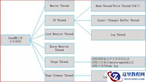 后台线程包括(Mater Thread、IOThread、Lock Monitor Thread、ErrorMonitor Thread、Purge Thread、PageCleaner Thread)刷新内存池中的过程数据,管理维护 InnoDB 存储引擎正常工作。