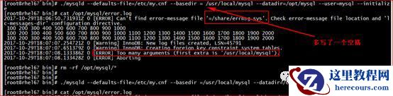 [root@rhel67 bin]# /usr/local/mysql/bin/mysqld --defaults-file=/etc/my.cnf --basedir =/usr/local/mysql --datadir=/opt/mysql --user=mysql --initialize