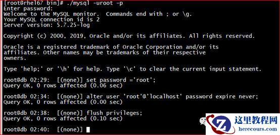 找到密码,使用如下命令登陆 MySQL 并设置密码为 root 且永不过期。