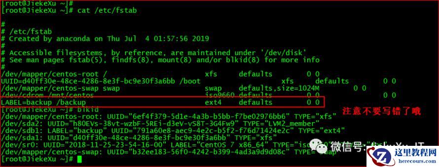 分区完成后对其进行打卷标,查看 UUID 进行挂载实现开机自启动。