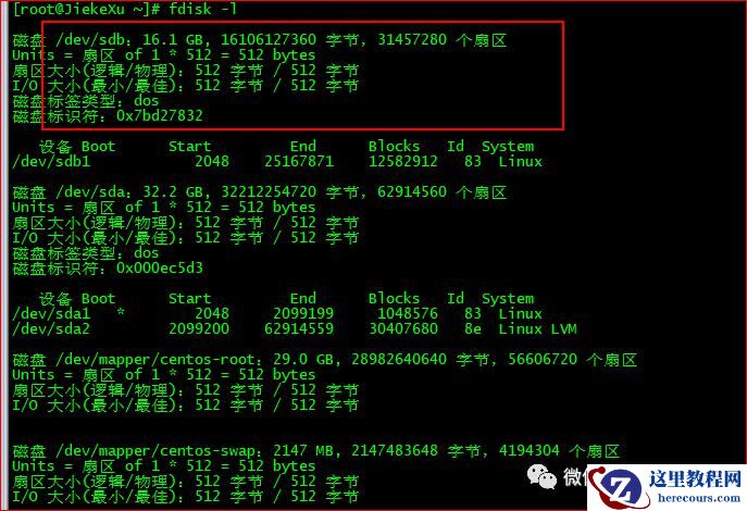 新加入的磁盘使用 fdisk -l 便可查看对应的大小,如查看不到需要重启操作系统。