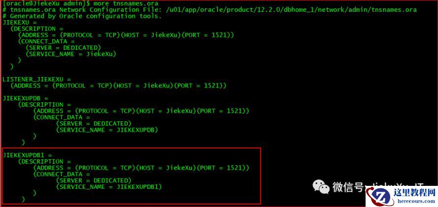 查看监听状态,配置监听,使用新监听名连接到 JiekeXupdb1