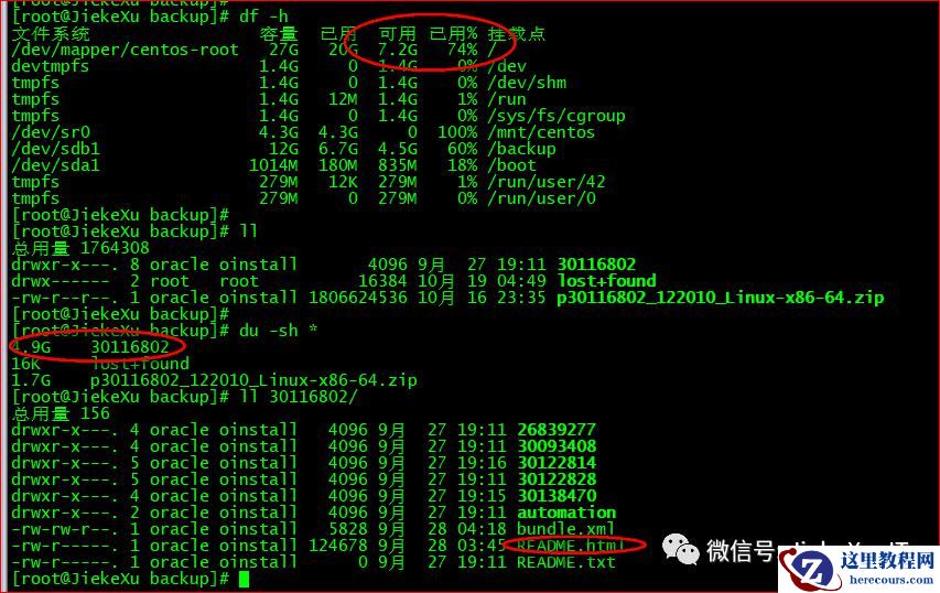 [oracle@JiekeXu software]$ unzip p6880880_122010_LINUX.zip[oracle@JiekeXu software]$ unzip p30116802_122010_Linux-x86-64.zip####删除 zip 包[root@JiekeXu software]# rm -rf p6880880_122010_LINUX.zip