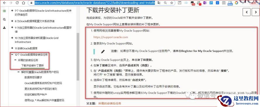官方文档安装手册在第十二节中对于补丁下载更新有介绍,如下截图: