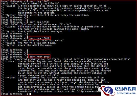 [oracle@JiekeXu~]$ oerr ora 60000600,00000, "internal error code, arguments: [%s], [%s], [%s], [%s], [%s],[%s], [%s], [%s], [%s], [%s], [%s], [%s]"//*Cause: This is the generic internal error number for Oracle program// exceptions. It indicates that aprocess has encountered a low-level,// unexpected condition. The firstargument is the internal message// number. This argument and the databaseversion number are critical in// identifying the root cause and thepotential impact to your system.////*Action: Visit My Oracle Support to access the ORA-00600 Lookup tool// (reference Note 600.1) for moreinformation regarding the specific// ORA-00600 error encountered.//// An Incident has been created for thiserror in the Automatic// Diagnostic Repository (ADR). Whenlogging a service request, use// the Incident Packaging Service (IPS)from the Support Workbench// or the ADR Command Interpreter(ADRCI) to automatically package the// relevant trace information (reference MyOracle Support Note 411.1).//// The following information should alsobe gathered to help determine// the root cause:// - changes leading up to the error// - events or unusual circumstancesleading up to the error// - operations attempted prior tothe error// - conditions of the operatingsystem and databases at the time// of the error//// Note: The cause of this message maymanifest itself as different// errors at different times. Be awareof the history of errors that// occurred before this internal error.