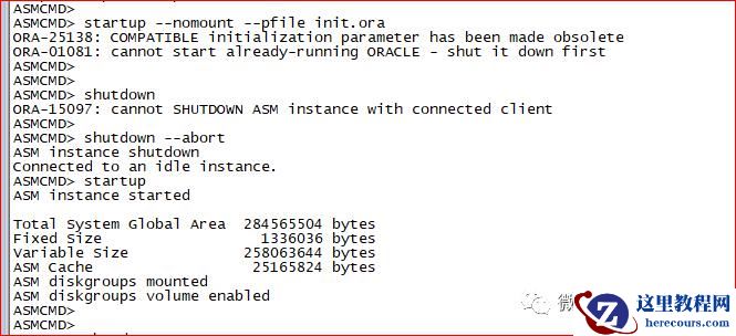 ASMCMD> startup --nomount --pfile init.ora