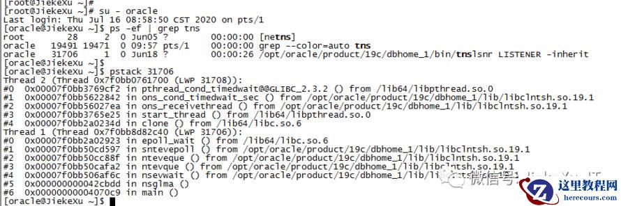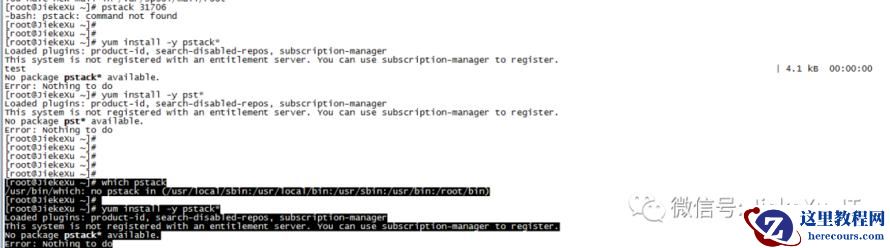 原本想着使用 pstack 命令监控一下监听日志可没想到,Linux 系统默认没有这个命令。RedHat 公司发行的 Linux 操作系统(RHEL,CentOS等等)虽提供了 pstack 工具,但要安装 gdb。