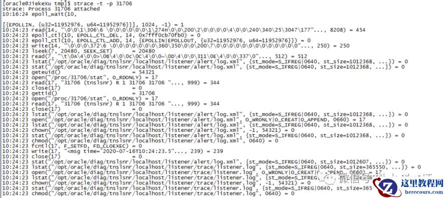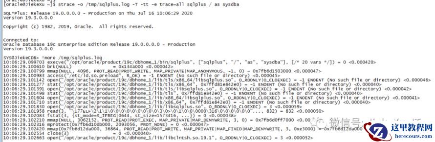 最后也使用操作系统跟踪命令跟踪 sqlplus 连接过程,从而观察跟踪文件。要是没有 strace 也需要安装一下。