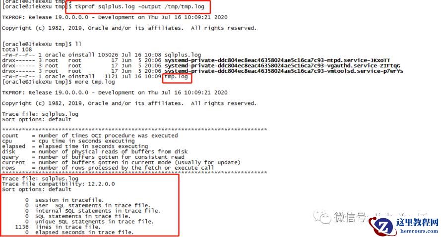 tkprof 文件名 -output 文件名 cat 文件名