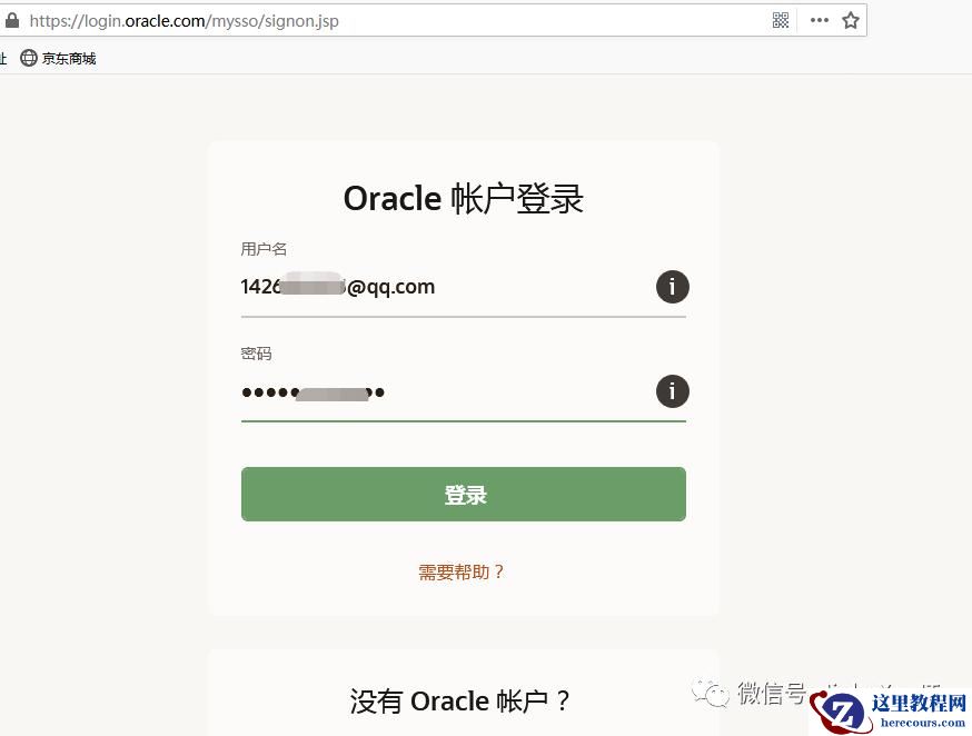 使用你的 Oracle 账号登陆