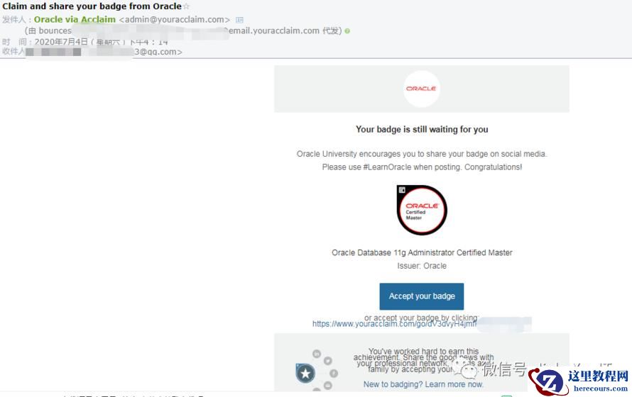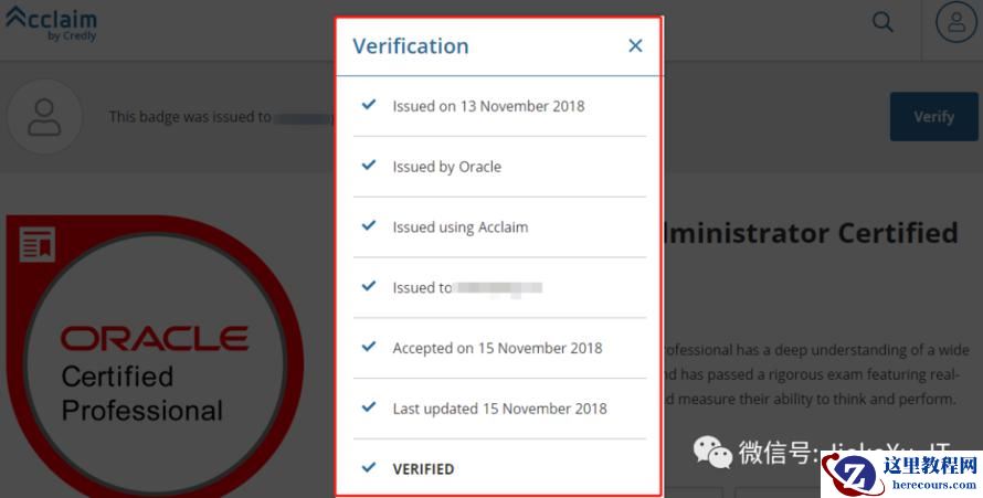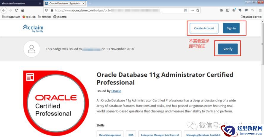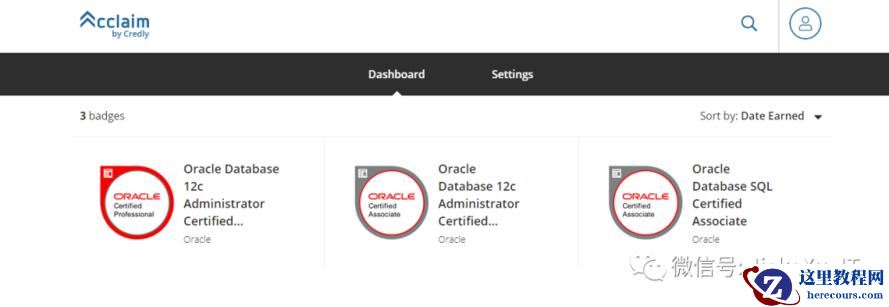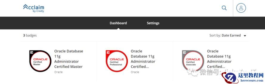 登陆之后便可以看到你所获得的 Oracle 徽章