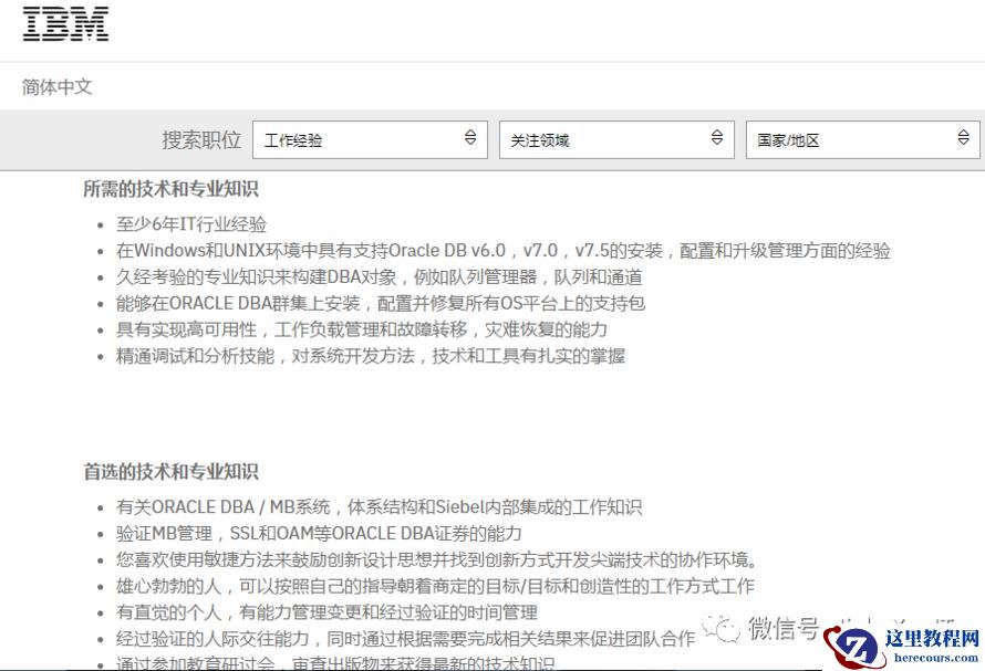 下边是 IBM 的 DBA 招聘要求,看看符合要求不?但是这要求 Oracle DB v6.0,v7.0,v7.5 的安装,这信息得是多少年没有修改了啊,看看就好吧,继续了。