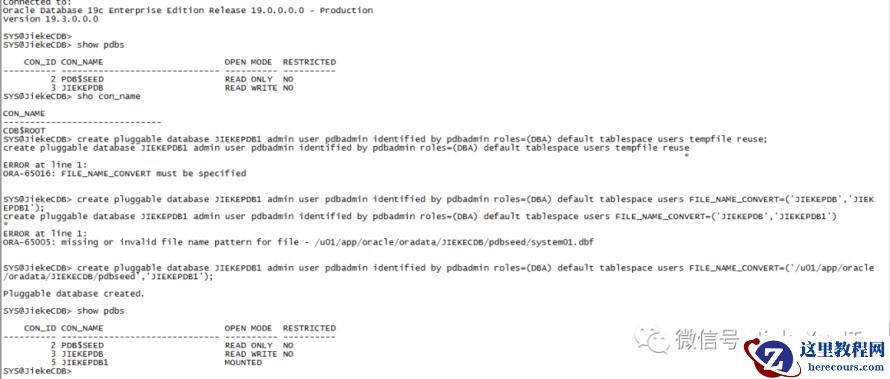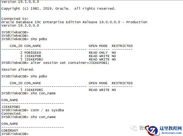 export ORACLE_PDB_SID=JIEKEPDB1sqlplus / as sysdba sho pdbs