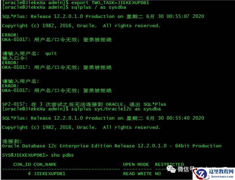 1)export ORACLE_PDB_SID=JIEKEPDB1