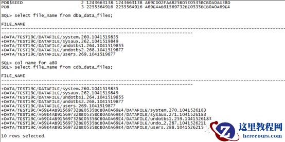 这里通过查询 cdb_data_files 视图查询数据文件所在位置,如下图,发现出现了一串字母数字组成的目录结构,这个是由于 Oracle 使用 OMF 管理,使用 GUID 来作为目录结构唯一标识一个 PDB 。而当使用 dba_data_files 视图来查看数据文件时只查看到当前容器即CDB$ROOT 中的数据文件,使用 cdb_data_files 时才看到了所有的数据文件。为啥呢?