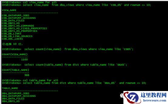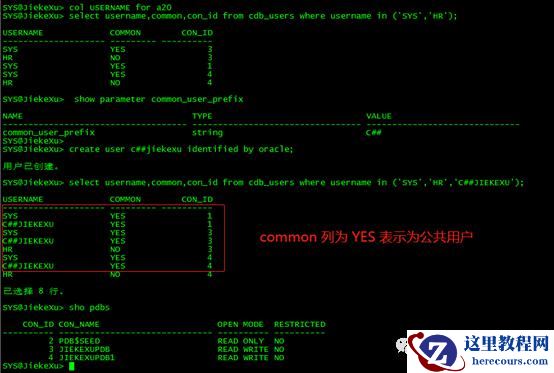 SYS@JiekeXu>SELECT NAME, CDB, CON_ID FROM V$DATABASE;NAME CDB CON_ID------------------------ ----------JIEKEXU YES 0SYS@JiekeXu> sho pdbsCON_ID CON_NAME OPEN MODE RESTRICTED---------------------------------------- ---------- ----------2 PDB$SEED READ ONLY NO3 JIEKEXUPDB READ WRITE NO4 JIEKEXUPDB1 READ WRITE NO