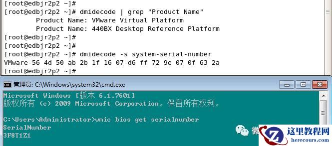 [root@edbjr2p2 ~]# dmidecode | grep "Product Name" Product Name: VMware Virtual Platform Product Name: 440BX Desktop Reference Platform[root@edbjr2p2 ~]# [root@edbjr2p2 ~]# [root@edbjr2p2 ~]# dmidecode -s system-serial-numberVMware-56 4d 50 ab 2b 1f 16 07-d6 ff 72 9e 07 0f 63 2a[root@edbjr2p2 ~]#