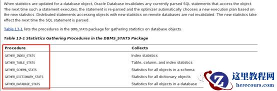 dbms_stats包可以收集数据库、数据字典、索引、表 等的统计信息。