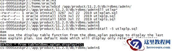 Explainplan for:这个命令后面直接跟 SQL语句,然后运行家目录下的 utlxplp.sql 这个脚本便可以查看执行计划。那么这个脚本是啥内容,如下也就是一行内容,这样便可以直接使用如下语句了。顺便说一句,前面客户端工具也是调用这个脚本产生执行计划,那么,这个方法查看的执行计划当然也不是真实的了。
