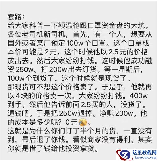 最近应该很多公司企业都开始渐渐的现场复工了,很多地方的客运站和公交车也基本上也都开始恢复运营,这是值得高兴的事情,但复工的前提是要做好防护措施,那么口罩就首当其冲了,可是任然有不少不良商家坐地起价通过卖口罩,手套,消毒液等牟取暴利。