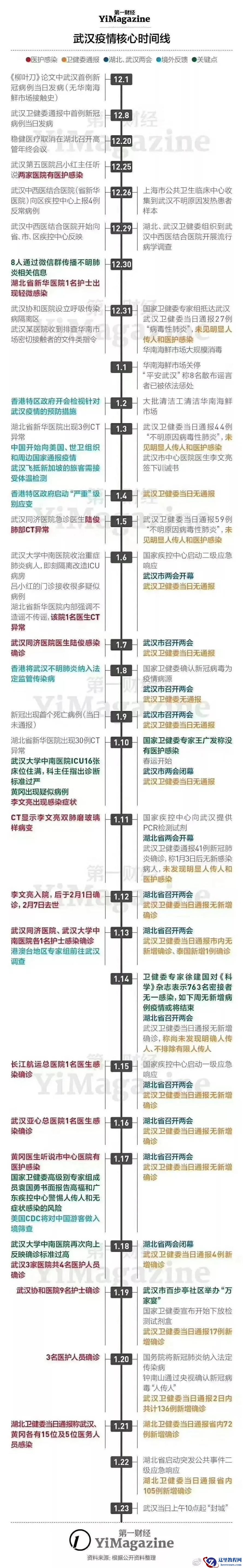 这里放一个来源于第一财经关于武汉疫情的核心时间轴,我们细品。