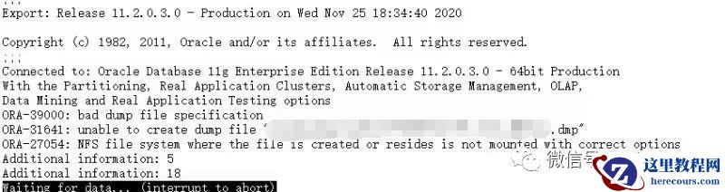 今天使用数据泵导出数据时,由于源端、目标端不在同一网段,无法使用 scp 传输 dmp 文件,便在两端挂载了一个 NFS 文件系统。但是导出时遇到如下错误 ORA-27054 错误。