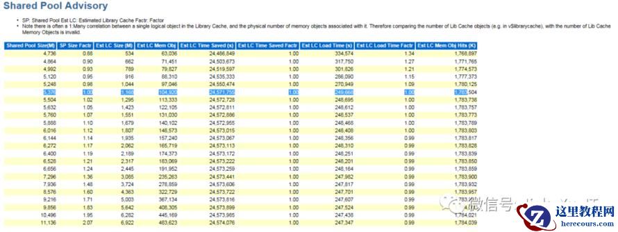 AIX 操作系统内存 64G,数据库内存 38.25G,将其调整为 30G,PGA 调整为 14G,shared_pool 5G,db_cache 15G,large_pool 1G,java_pool 128G,streams_pool 256M。这些值都是一个近似的值,一个较为合理的值,并不保证 100% 完美正确,在 AWR 报告中 Advisory Statistics 部分,也会有相关的建议值,如下便是一个较为合理的 shared_pool 的值。设置完这些值后重启数据库系统,将会有一个很大的提升。