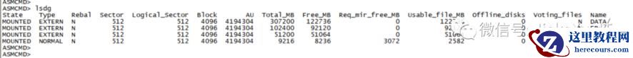 State Type Rebal Sector Logical_Sector Block AU Total_MB Free_MB Req_mir_free_MB Usable_file_MB Offline_disks Voting_files Name