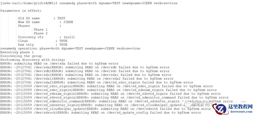 renamedg operation: phase=both dgname=JIEKE newdgname=JIEKEXU verbose=true asm_diskstring=/dev/asmdisks/asm-mgmt