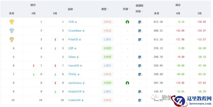 本月 TOP10 榜单固若金汤,同时排名较往期变化较小,其中过半产品(6款)得分呈负增长,TiDB、OceanBase 和 PolarDB 继续保持着上个月的 “T-O-P” 阵容,GaussDB 上升至第六位与 TDSQL 互换顺序,其他 8 款产品均无排名变化。