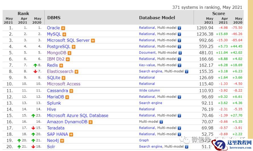 本月排行榜前十名依然没有变化,Oracle 本月得分 1269.94,较上月下降了 4.98。近期如火如荼的国产数据库雄起,加上云数据库的发展,这种下降已是必然的。但开源的 MySQL 却大放异彩,本月增加了 15.69 分,前十名中增幅最大的,本月得分 1236.38,已经离第一的位置越来越近了,也许过几年的时间,MySQL 会不会取代 Oracle,成为第一名呢?让我们敬请期待吧!