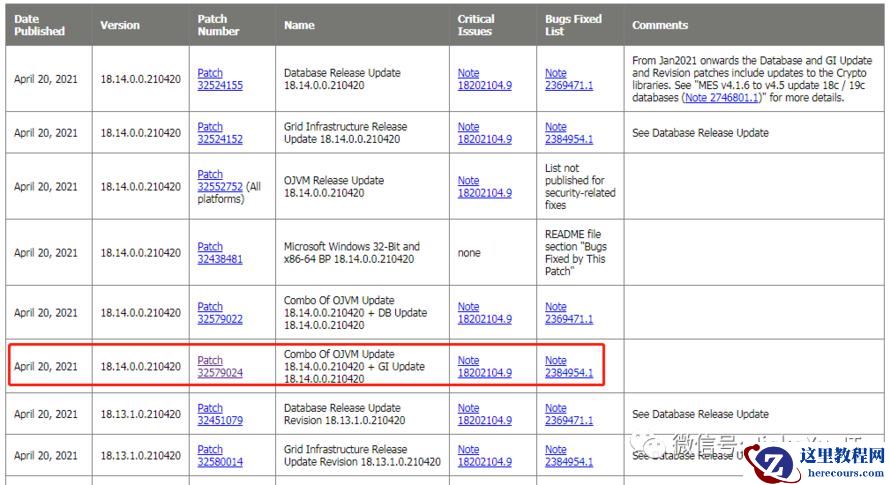 18c 补丁号是 32579024 目前已经是 18.14 了,补丁解决了以下 BUG。