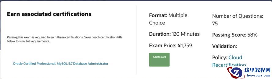 MySQL OCP 5.7 的考试代码是 1Z0-888,120 分钟的考试时间需做完 75 道选择题(包括单选和不定项多选),考题形式为单选和多选,正确率达到 58% 可通过考试。考试费目前为人民币1759(不含税,今年已经涨价了)元,购买考券后大概 1800 元左右吧。