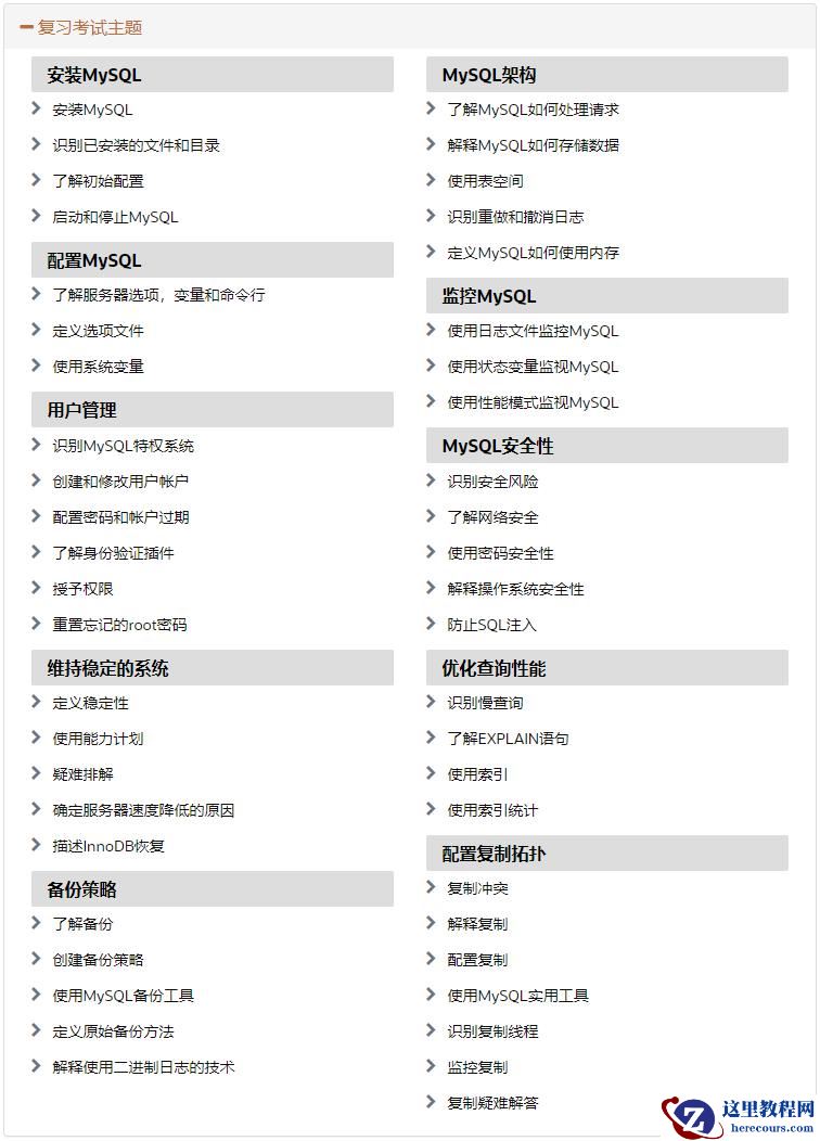MySQL 5.7 考试大纲有安装、配置、监控、体系等十大结构,大纲具体如下: