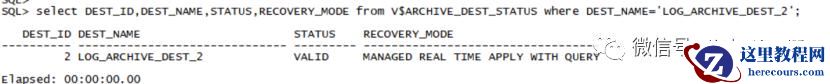 col DEST_NAME for a30select DEST_ID,DEST_NAME,STATUS,RECOVERY_MODE from V$ARCHIVE_DEST_STATUS where DEST_NAME='LOG_ARCHIVE_DEST_2';status正常状态为VALID ,如果备库停止日志传输,设置defer则status为BAD PARAM RECOVERY_MODE正常状态为 MANAGED REAL TIME APPLY如果备库恢复模式不是“REAL TIME APPLY”,备库重启日志恢复进程,起用“REAL TIME APPLY”[备库][oracle用户][节点1]ALTER DATABASE RECOVER MANAGED STANDBY DATABASE CANCEL;ALTER DATABASE RECOVER MANAGED STANDBY DATABASE USING CURRENT LOGFILE DISCONNECT;