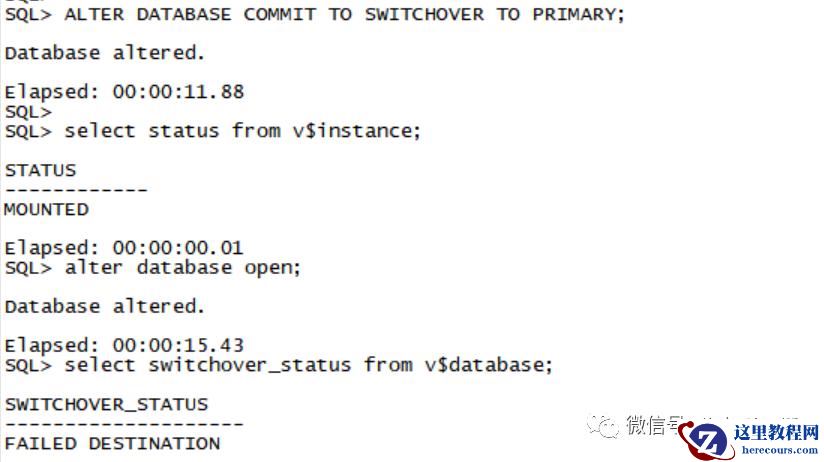 SQL>ALTER DATABASE COMMIT TO SWITCHOVER TO PRIMARY;SQL>alter database open;