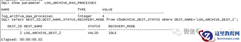 log_archive_max_processes值需大于等于4,但也不会太大。show parameter LOG_ARCHIVE_MAX_PROCESSES