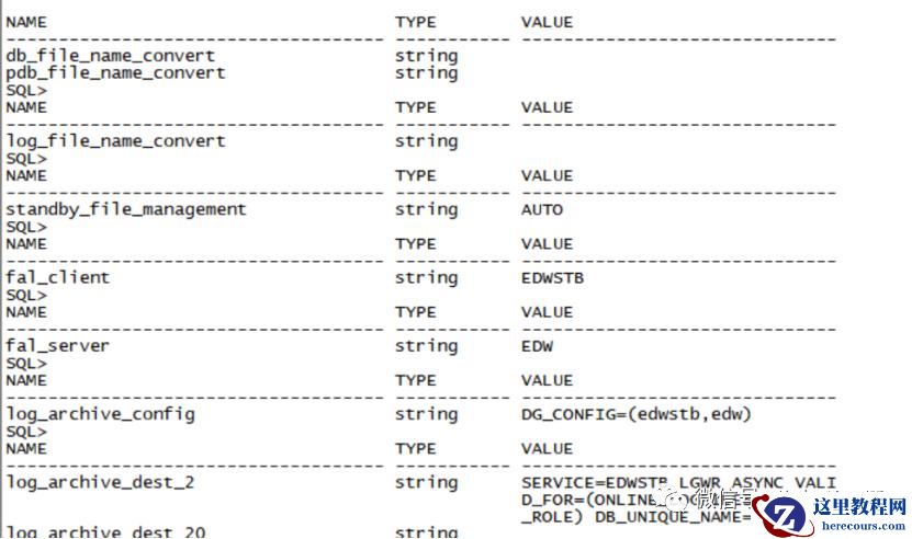 show parameter db_file_name_convertshow parameter log_file_name_convertshow parameter standby_file_managementshow parameter fal_clientshow parameter fal_servershow parameter log_archive_configshow parameter log_archive_dest_2show parameter log_archive_dest_2_state