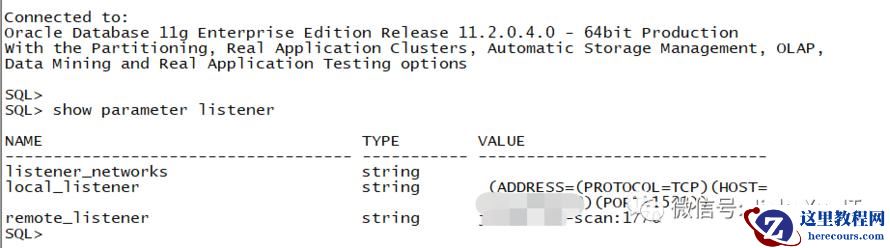 show parameter listenerNAME TYPE VALUE----------- ------------------------------listener_networks stringlocal_listener stringremote_listener string